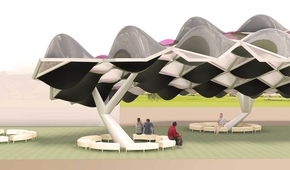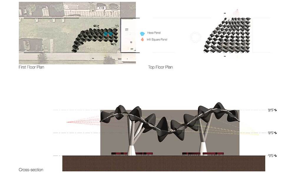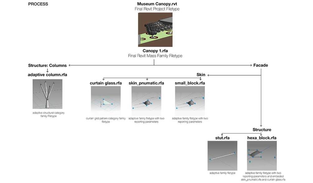 The Objective of the project is to explore reporting and repeating strategies inside adaptive Revit family mass modeling as elements of parametric design as they relate to a responsive facade enclosure and structure with varying points of influence. The concept is derived from the micro-organisms form as inspiration and support them with mushroom-like adaptive variable columns.